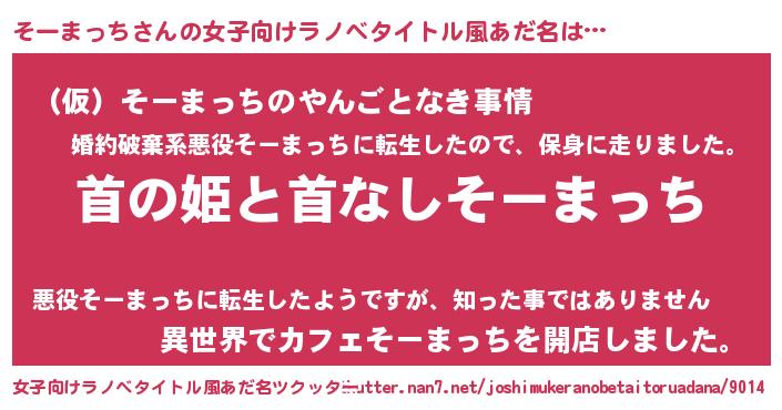 | 男性向けラノベタイトル風あだ名 | 『はたらくそーまっちさま!』 |