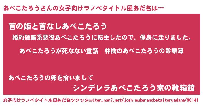 | 男性向けラノベタイトル風あだ名 | 『魔弾の王とあべこたろう』 |