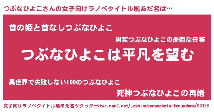 | ヘコむあだ名 | 『つぶを』『つぶなひよこ(笑)』 |