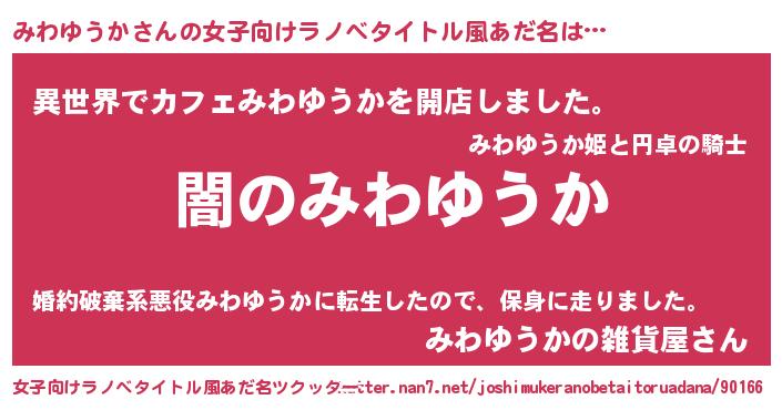 | 男性向けラノベタイトル風あだ名 | 『Re:みわゆうかから始める異世界生活』 |