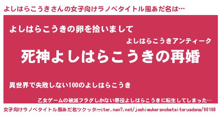 | 男性向けラノベタイトル風あだ名 | 『ノーゲーム・ノーヨシハラコウキ』 |