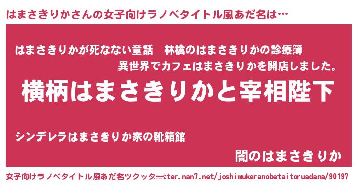 | 意味不明あだ名 | 『住所不定無職はまさきりか(68歳)』 |