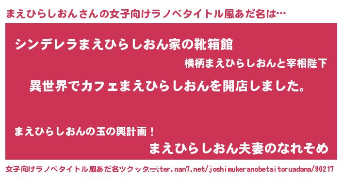 | 男性向けラノベタイトル風あだ名 | 『誰もが恐れるあのまえひらしおんが、ぼくの専属メイドになるようです。』 |