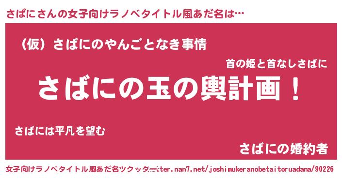 | 男性向けラノベタイトル風あだ名 | 『転生したらさばにだった件』 |