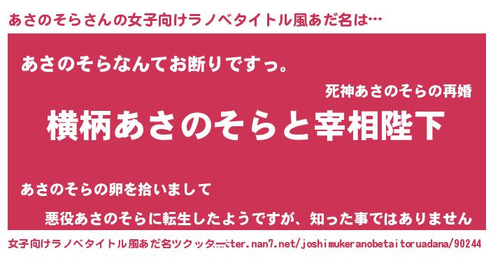 | 胡散臭い通販商品みたいなあだ名 | 『テレビで話題の高麗人参…その名も「あさのそら」』 |