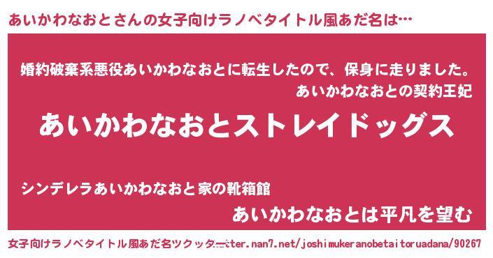 | 男性向けラノベタイトル風あだ名 | 『Re:あいかわなおとから始める異世界生活』 |