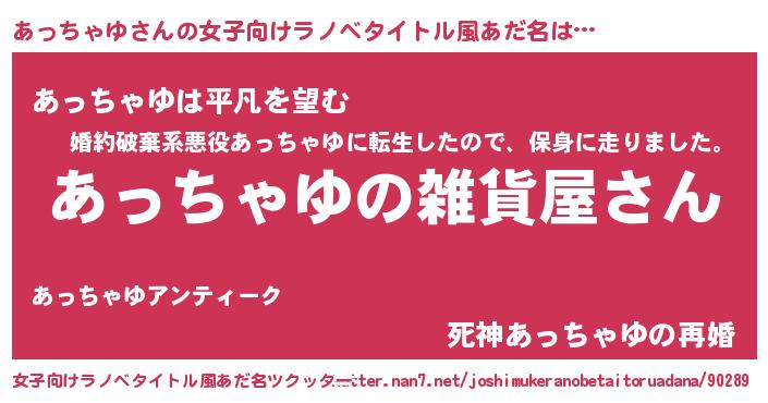 | 男性向けラノベタイトル風あだ名 | 『やはりあっちゃゆの青春ラブコメはまちがっている 』 |