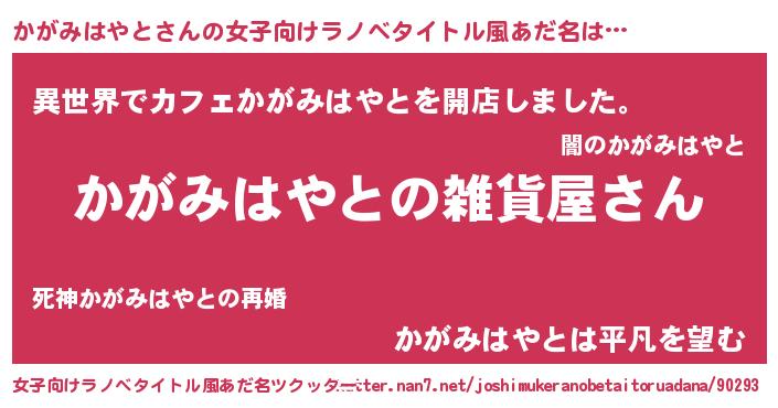 | ファンタジー風あだ名 | 『エターナルカガミハヤトー』 |