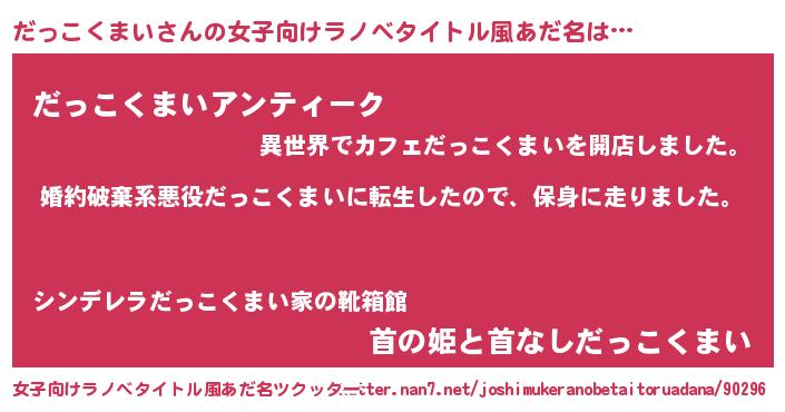 | 男性向けラノベタイトル風あだ名 | 『ダッコクマイスレイヤー』 |