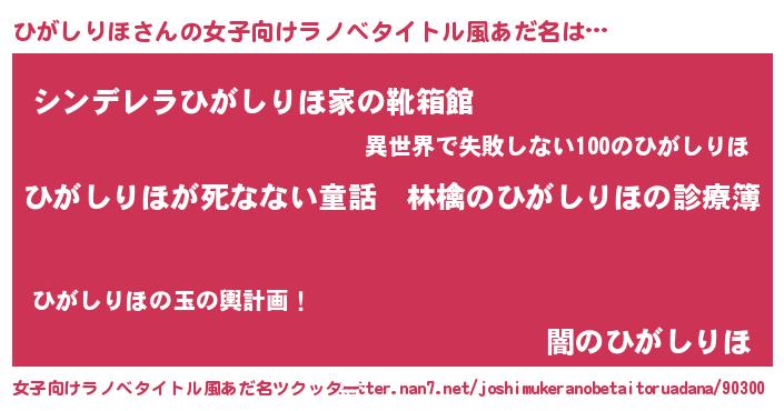 | 男性向けラノベタイトル風あだ名 | 『魔弾の王とひがしりほ』 |
