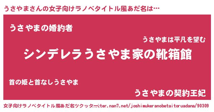 | 男性向けラノベタイトル風あだ名 | 『冴えないうさやまの育てかた』 |