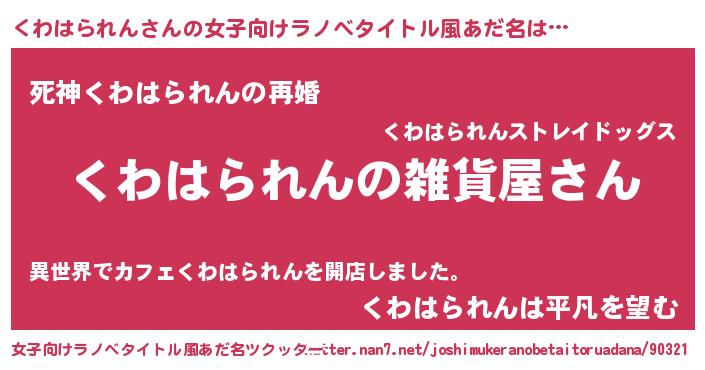 | 男性向けラノベタイトル風あだ名 | 『やはりくわはられんの青春ラブコメはまちがっている 』 |