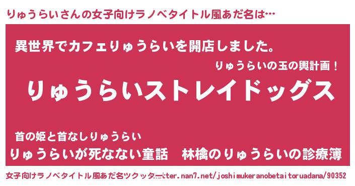 | 可愛いあだ名 | 『りゅうちぇる』『りゅうらいママ』 |