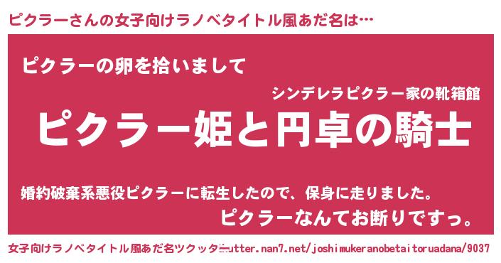 | 男性向けラノベタイトル風あだ名 | 『ピクラーアートオンライン』 |