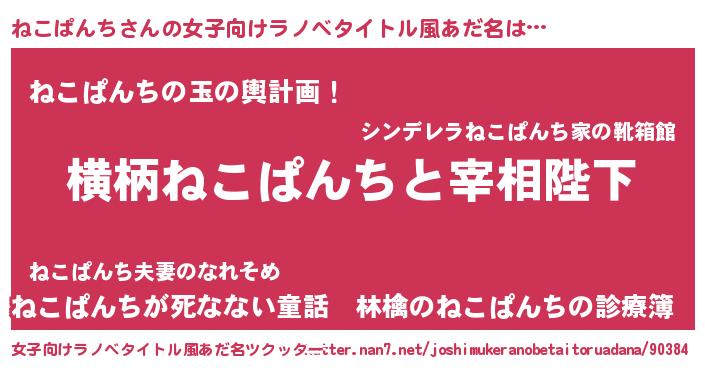 | ピコ太郎風あだ名 | 『ネネ太郎』『ピコネ郎』『ネコ八郎』 |