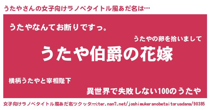 | 肩書あだ名 | 『うたや国家主席』『うたや総統』 |