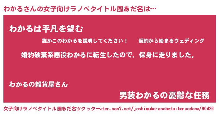 | 男性向けラノベタイトル風あだ名 | 『ワカルスレイヤー』 |