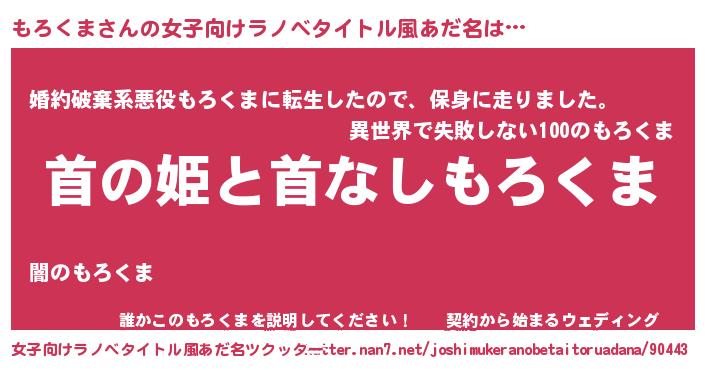 | 男性向けラノベタイトル風あだ名 | 『はたらくもろくまさま!』 |