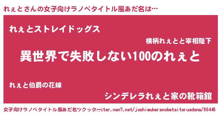 | 男性向けラノベタイトル風あだ名 | 『れぇとという概念が存在しない退屈な世界 』 |