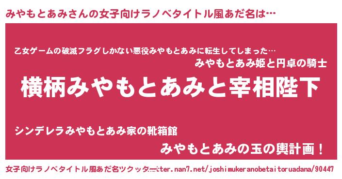 | 肩書あだ名 | 『みやもとあみプロデューサー』 |