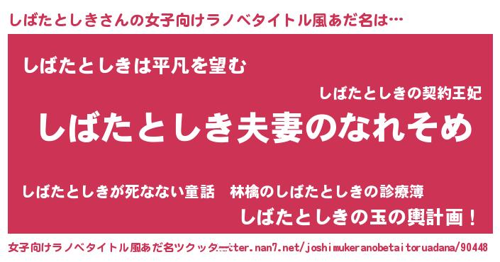 | 男性向けラノベタイトル風あだ名 | 『おまえをオタクにしてやるから、俺をしばたとしきにしてくれ! 』 |
