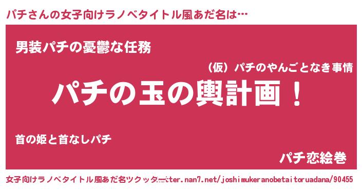 | ヘコむあだ名 | 『パチふぇ~』『なまこ酢』『パチお』 |