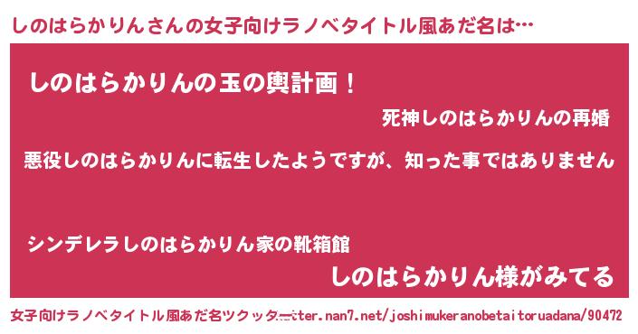 | 男性向けラノベタイトル風あだ名 | 『この素晴らしい世界にしのはらかりんを!』 |