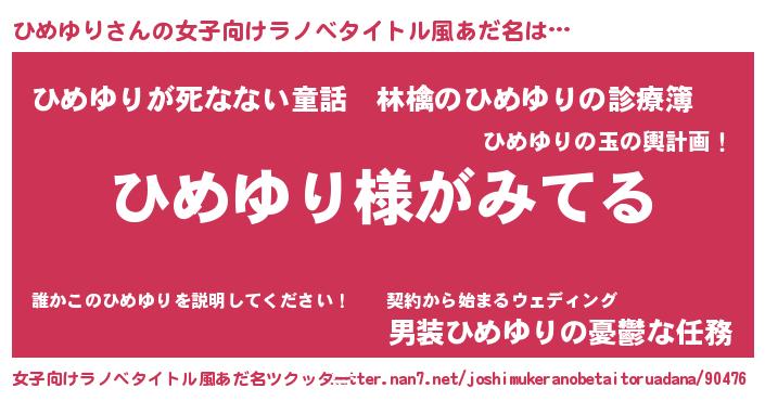 | 男性向けラノベタイトル風あだ名 | 『ひめゆりの嫁は女の子じゃないと思った?』 |
