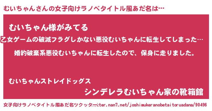 | 男性向けラノベタイトル風あだ名 | 『転生したらむいちゃんだった件』 |