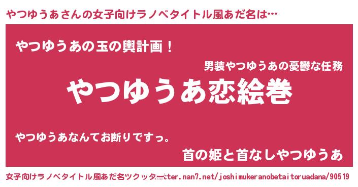 | 男性向けラノベタイトル風あだ名 | 『ノーゲーム・ノーヤツユウア』 |
