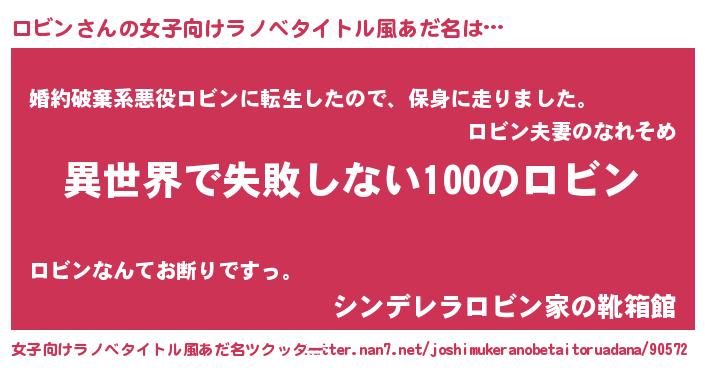 | 男性向けラノベタイトル風あだ名 | 『ロビンという概念が存在しない退屈な世界 』 |