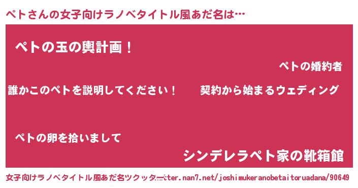 | 男性向けラノベタイトル風あだ名 | 『ペトアートオンライン』 |