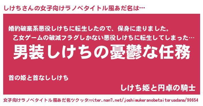 | 男性向けラノベタイトル風あだ名 | 『冴えないしけちの育てかた』 |
