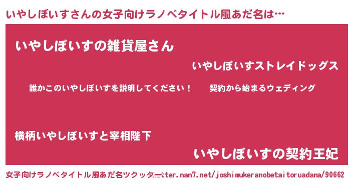 | 男性向けラノベタイトル風あだ名 | 『イヤシボイスアートオンライン』 |