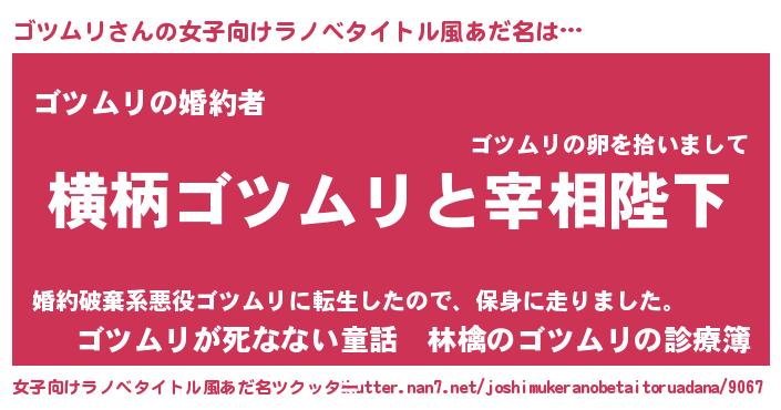 | 男性向けラノベタイトル風あだ名 | 『ゴツムリに滅ぼされるだけの簡単なお仕事です』 |