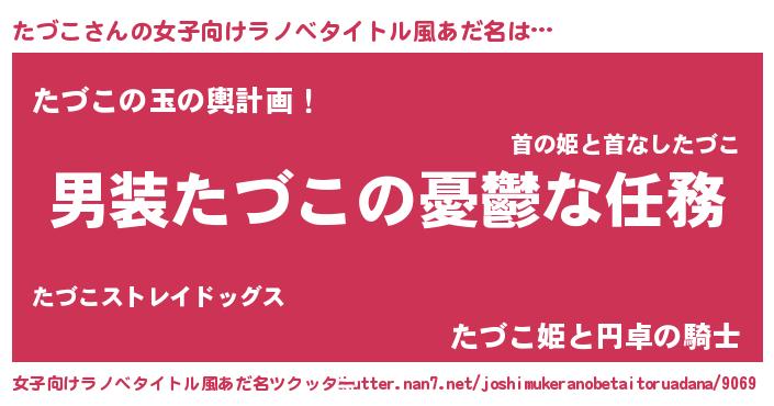| 男性向けラノベタイトル風あだ名 | 『冴えないたづこの育てかた』 |