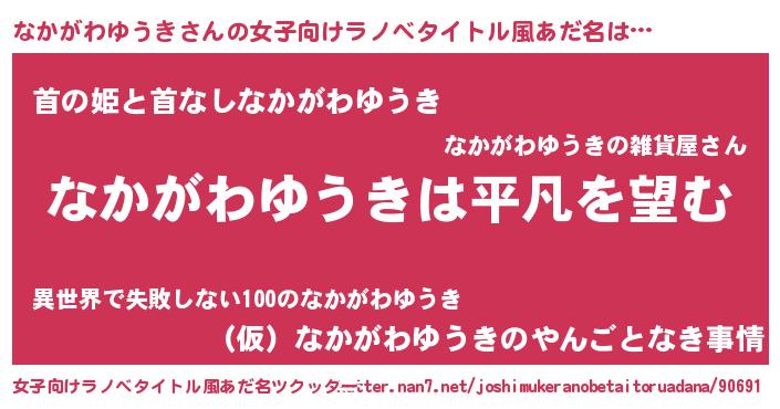 | 男性向けラノベタイトル風あだ名 | 『ダンジョンになかがわゆうきを求めるのは間違っているだろうか』 |