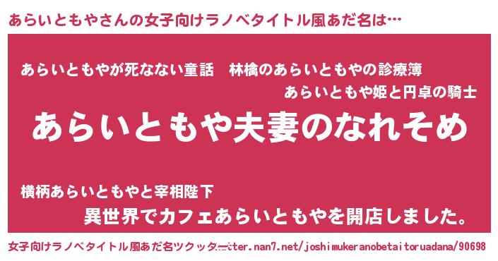 | ヘコむあだ名 | 『あらいともや(小並感)』『あらにー』 |