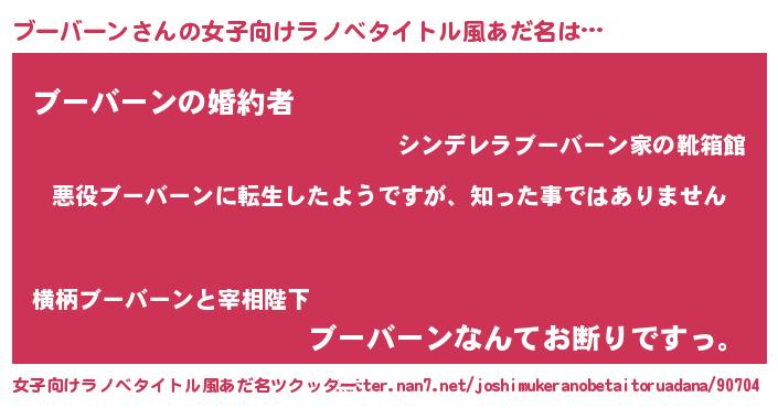 | 男性向けラノベタイトル風あだ名 | 『この素晴らしい世界にブーバーンを!』 |