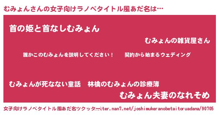 | 胡散臭い通販商品みたいなあだ名 | 『億万長者になれるブレスレット…その名も「むみょん」』 |