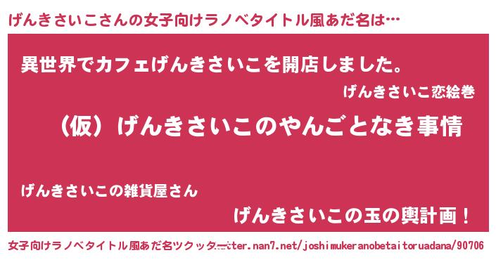 | 男性向けラノベタイトル風あだ名 | 『げんきさいこの憂鬱』 |