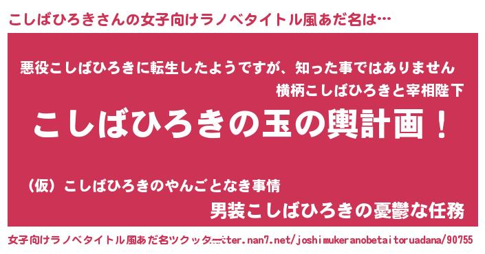 | 男性向けラノベタイトル風あだ名 | 『こしばひろき~年齢イコール彼女いない歴の魔法使い~』 |