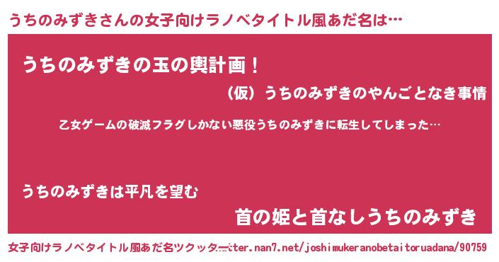 | 男性向けラノベタイトル風あだ名 | 『この素晴らしい世界にうちのみずきを!』 |