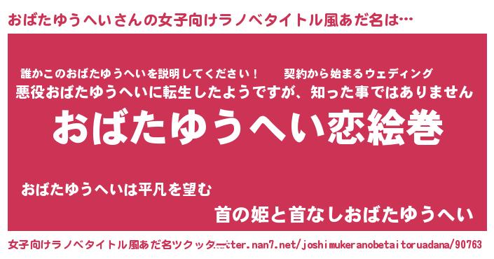 | 男性向けラノベタイトル風あだ名 | 『ノーゲーム・ノーオバタユウヘイ』 |
