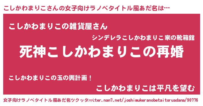 | 男性向けラノベタイトル風あだ名 | 『ノーゲーム・ノーコシカワマリコ』 |
