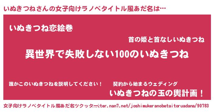 | 男性向けラノベタイトル風あだ名 | 『いぬきつねという概念が存在しない退屈な世界 』 |