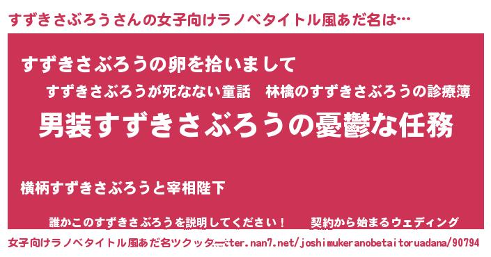| 男性向けラノベタイトル風あだ名 | 『うちのすずきさぶろうが世界を掌握している!』 |