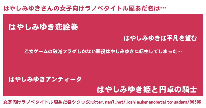 | 意味不明あだ名 | 『住所不定無職はやしみゆき(77歳)』 |