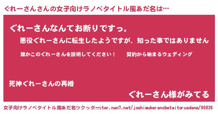 | 男性向けラノベタイトル風あだ名 | 『グレーサンアートオンライン』 |