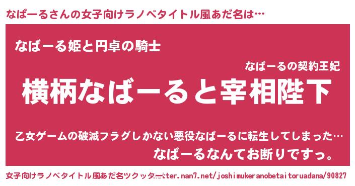 | 男性向けラノベタイトル風あだ名 | 『なばーるに滅ぼされるだけの簡単なお仕事です』 |